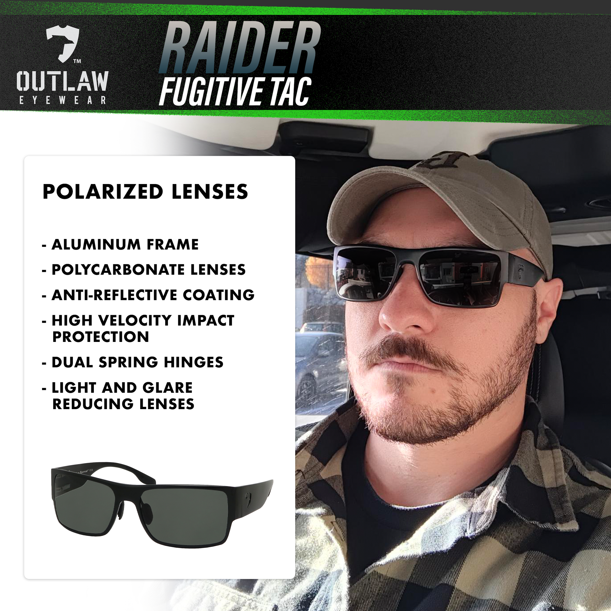 ELITE FUNCTIONAL DESIGN - Protect your eyes and upgrade to a more fashionable look with Raider ballistic tactical sunglasses when on the job or at the range. As an industry recognized leader in sunglass design, Outlaw Eyewear brings you the Raider TAC, a flatter rectangular shaped frame that maintains the highest ballistic standards constructed with an aluminum frame.
