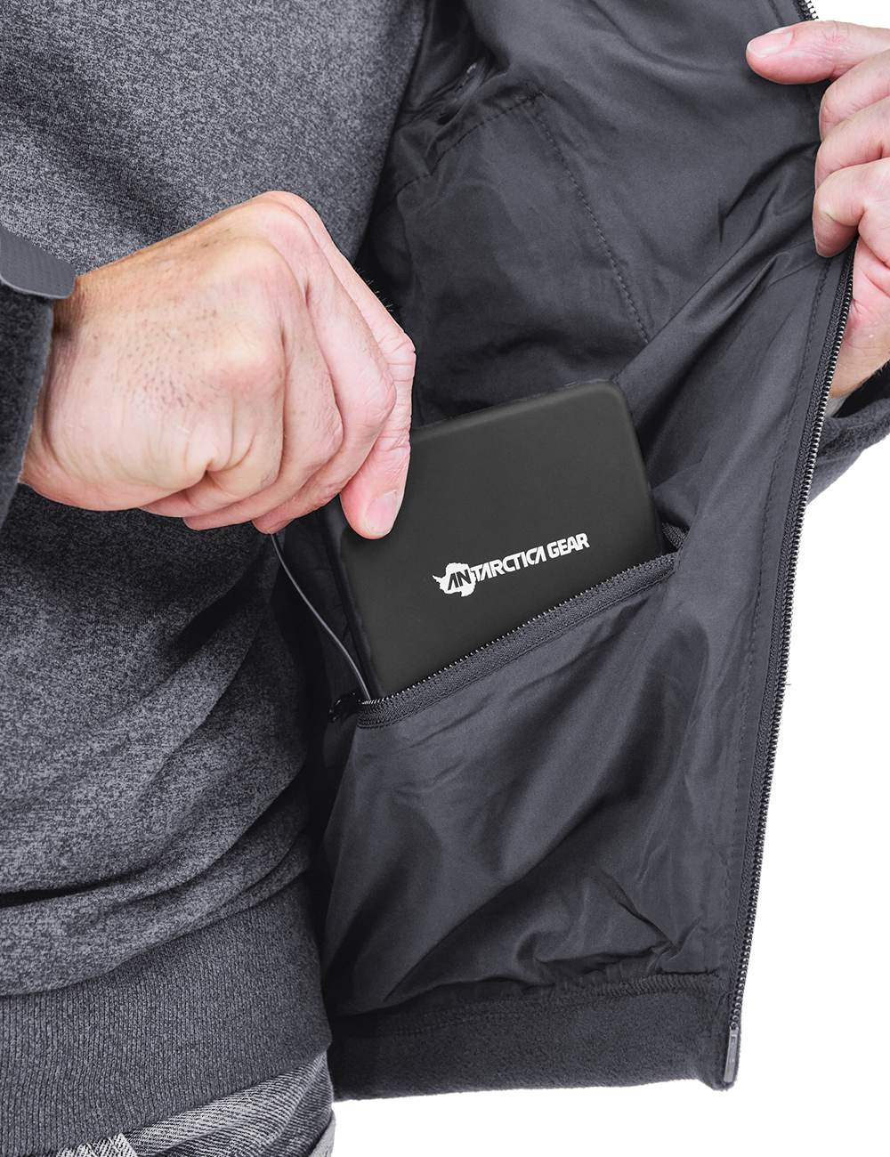 ANTARCTICA GEAR Fleece Heating Jacket, Fit Zip Hood Winter Jacket For Men