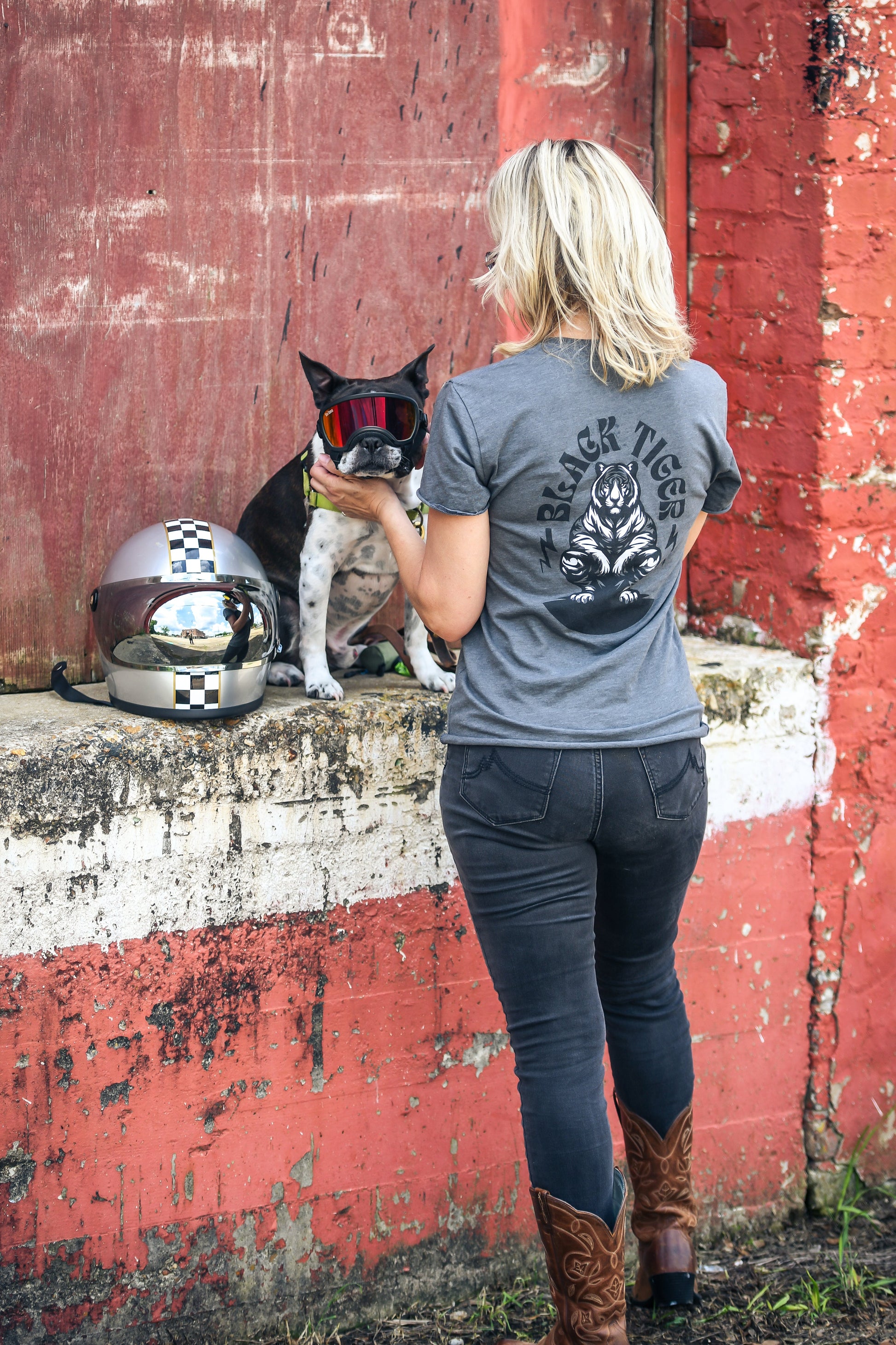 Our Standard Black Tiger Logo "T" printed on everyone's favorite soft and cozy "Next Level" shirt features "Black Tiger" on the front left chest and full Black Tiger on the back.