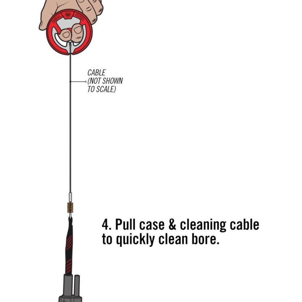 World’s Easiest Bore Cleaner. The single piece Dual Action Cable with integrated phosphor bronze brush and braided mop wraps around the unique Flex-Case Handle to keep the system stowed and organized. To use, simply flip, feed, clip, and pull. Throw it in your pack, or put it in your pocket. It’s the next best thing to a self-cleaning gun.