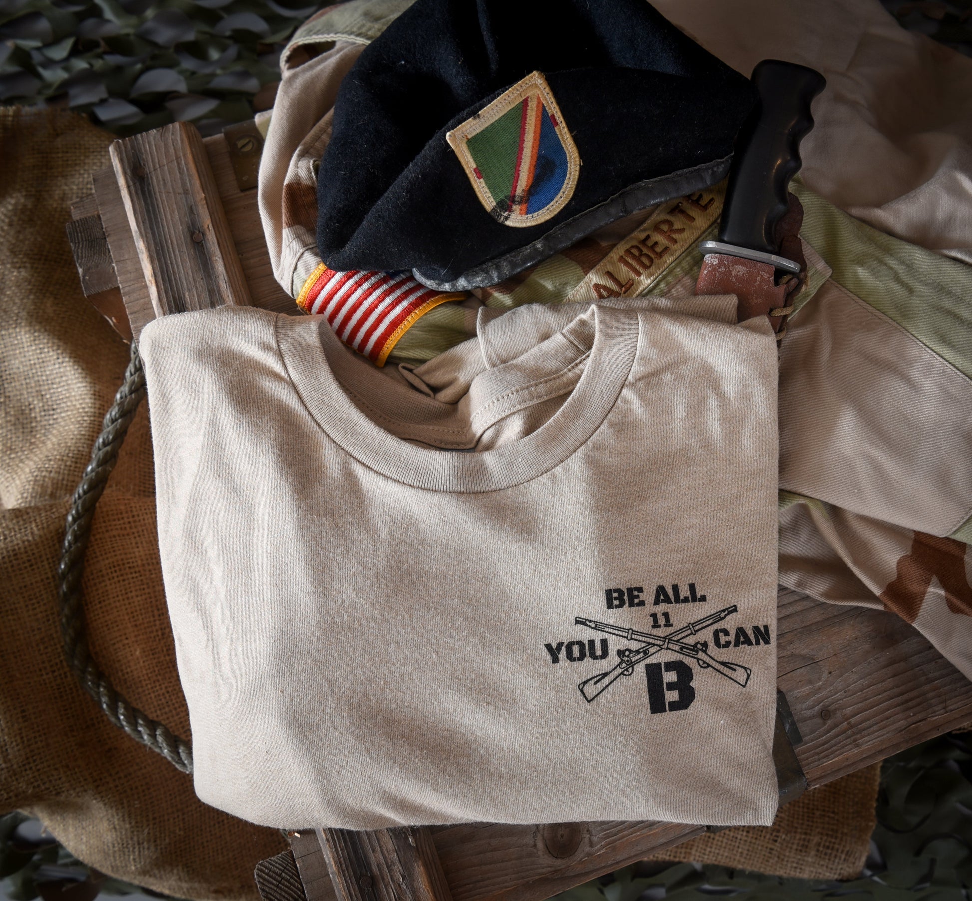 The Shirt: Left Chest "Be All You Can 11B" logo on the soft and cozy "Next Level" T-Shirt in desert sand color. Black Tiger logo on locker patch area on the back of the shirt. For those who may not know, “11Bravo” is the U.S. Army MOS (Military Occupational Specialty) for Infantryman. It’s the backbone of any land force, the boots on the ground, and the ones most likely to directly face combat. It’s not just a job; it’s an identity, a badge of pride, and for many, a lifelong brotherhood.