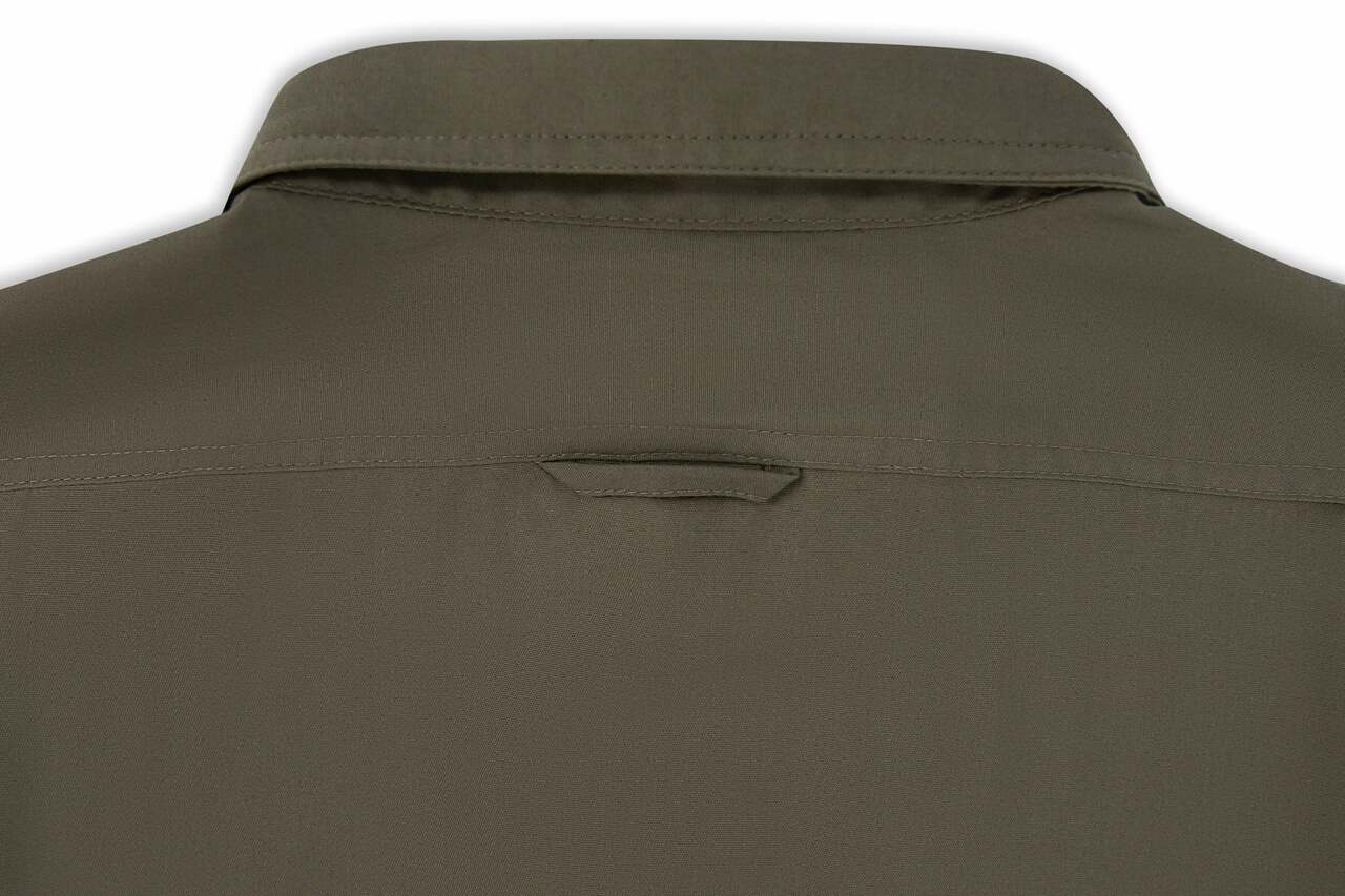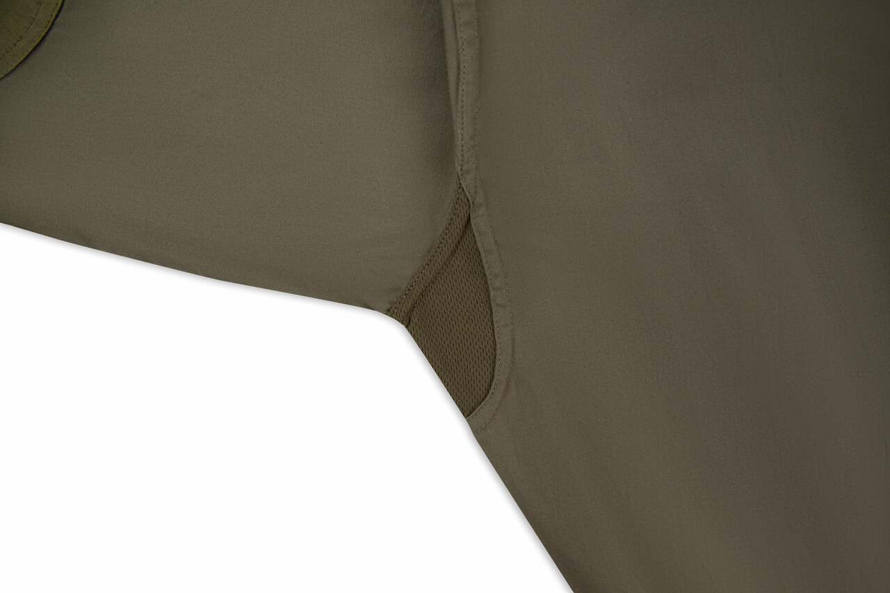 At a lakeside barbeque, the scent of woodsmoke in the air, one individual subtly captures attention. Donning the 'Jack Carr Hunters Shirt' in a striking Ranger Green, its intricate 5 oz 100% Cotton Reverse French Twill contrasts with the rugged 6.5 oz 100% Cotton Ripstop patches at the shoulder and elbow – an emblem of durability crowned with Crossed Tomahawks Embroidery. The concealed "Long Live The Brotherhood" printed inside the placket tells of stories untold, while the signature Crossed Tomahawk Logo and unique 9mm bullet rivet speak of adventures past and those yet to come. Made in Boston, it’s a perfect blend of tradition and innovation with its Tech Vent® underarm ventilation for comfort and a modern athletic fit that marries mobility with style. Limited to just 200, this isn't just attire; it's a badge of honor for the discerning outdoorsman