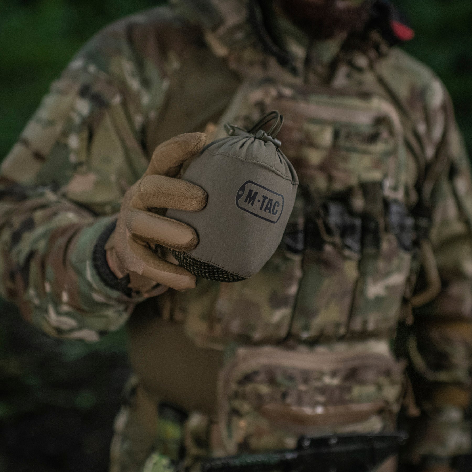 The camouflage suit for men is available in two sizes (S–L, XL–3XL) and comes with a compact pouch (12×9 cm) that can be attached to a belt with a snap button or clipped to a D-ring with a carabiner.