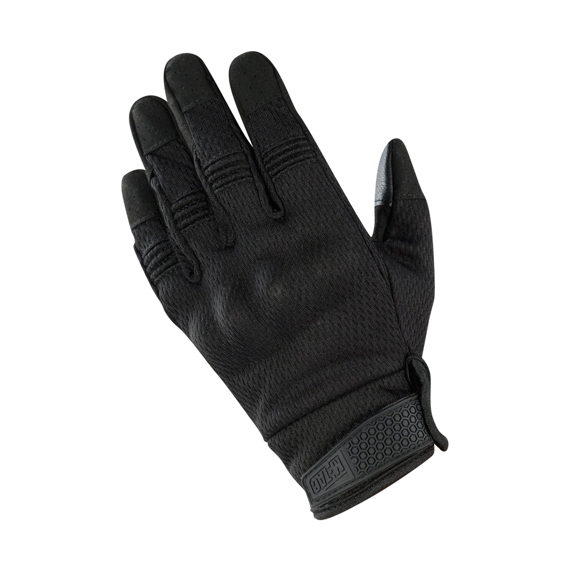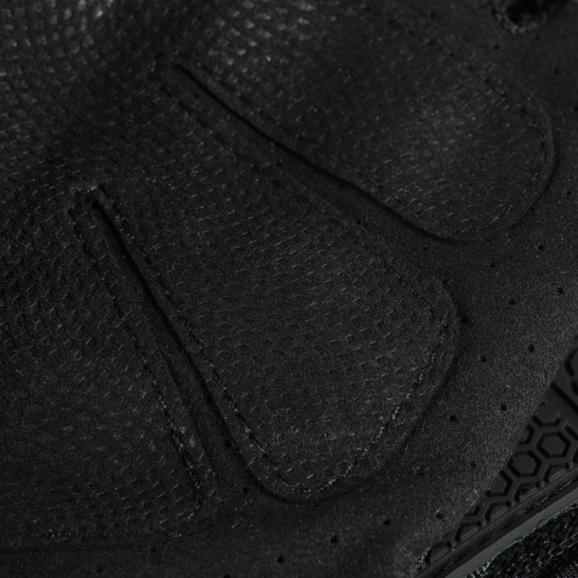 The palm and inner side of the fingers are made of microfiber, which is soft to the touch and ensures a secure grip. The outer part is crafted from durable yet breathable mesh fabric. For impact protection, the knuckles feature reinforced PVC padding. TouchScreen inserts on the thumb and index finger let you operate devices with touchscreens without removing the gloves.