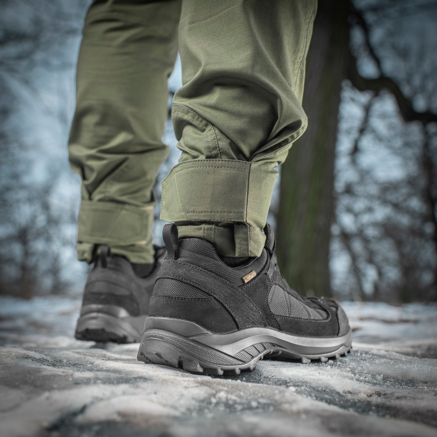 Thanks to the thoughtful cut, the pants do not restrict movement: they are comfortable for jumping, running, bending, squatting, and moving over rough terrain. The pants are equipped with a large number of pockets, both utilitarian and specialized: seven in total. This model also provides a hidden inner compartment for knee pads, allowing for the installation of additional protection.