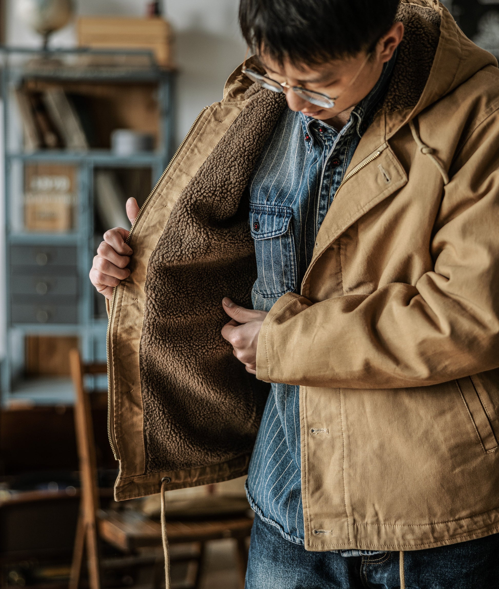 This faux sherpa-lined deck jacket is a durable fit that's built to last and will keep you comfortable during the cooler months. It's made from deck's thick, pure cotton fabric and features a soft faux sherpa collar and lining. Hooded style suitable for many occasions.