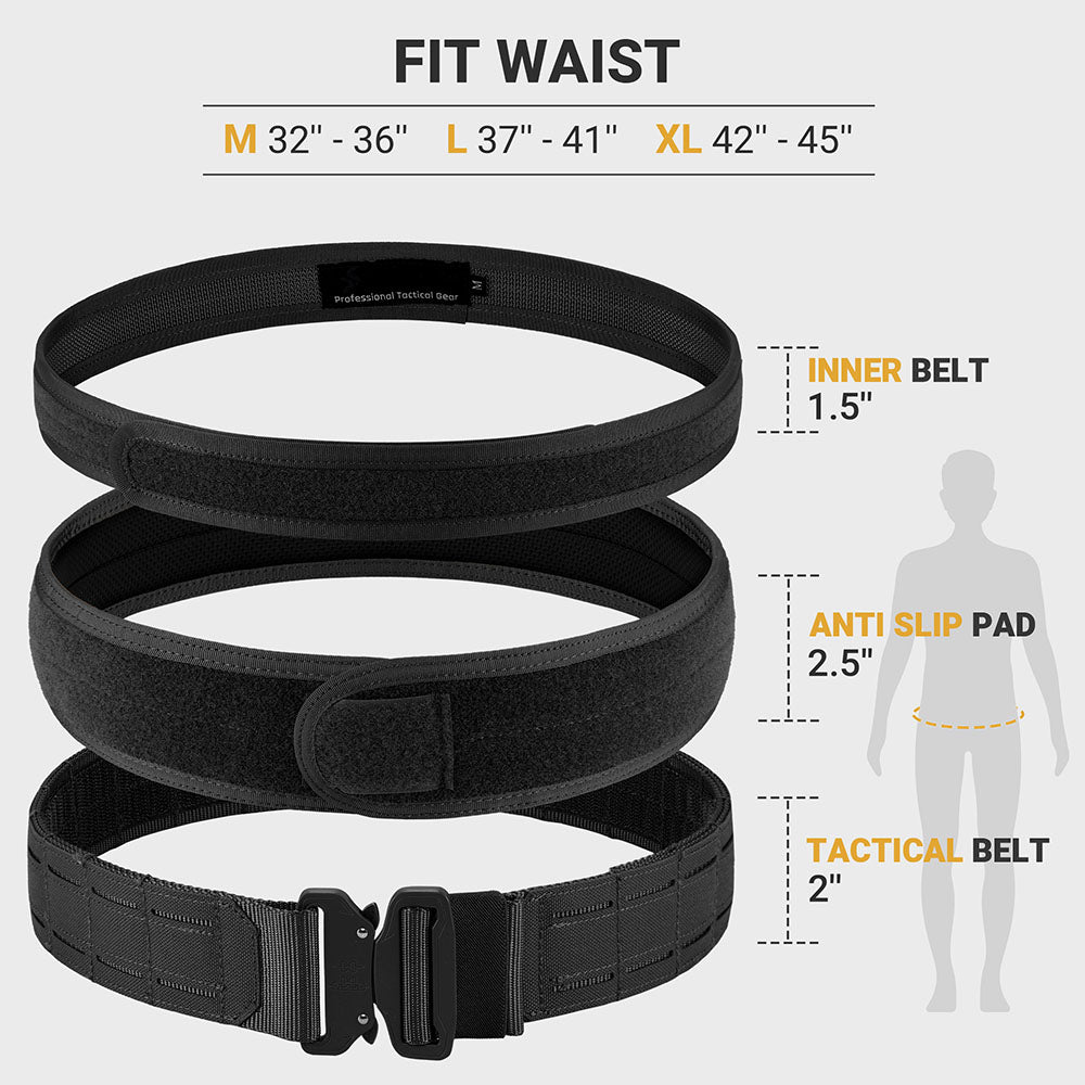 • Adjustable and Customizable: This Battle belt can be easily adjusted and customized to fit 32"-45" waist size. Main belt width: 1.75"; Inner loop belt width: 1.5"; Anti-slip loop belt width: 2". Applicable to different usage scenarios.
