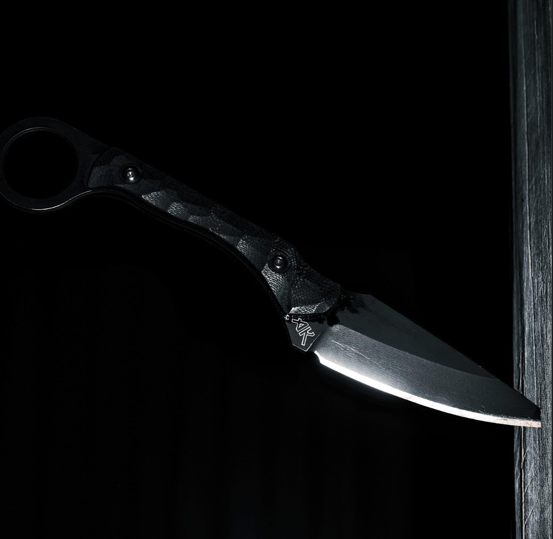 Designed through multiple fielded prototypes, with direct feedback from active operators to optimize size, strength, and functionality. The ultimate centerline stabber, the perfected EDC… 80CRV Steel to absorb shock and still retain a killer edge, Cerakote to protect, and waterproof G10 handles.