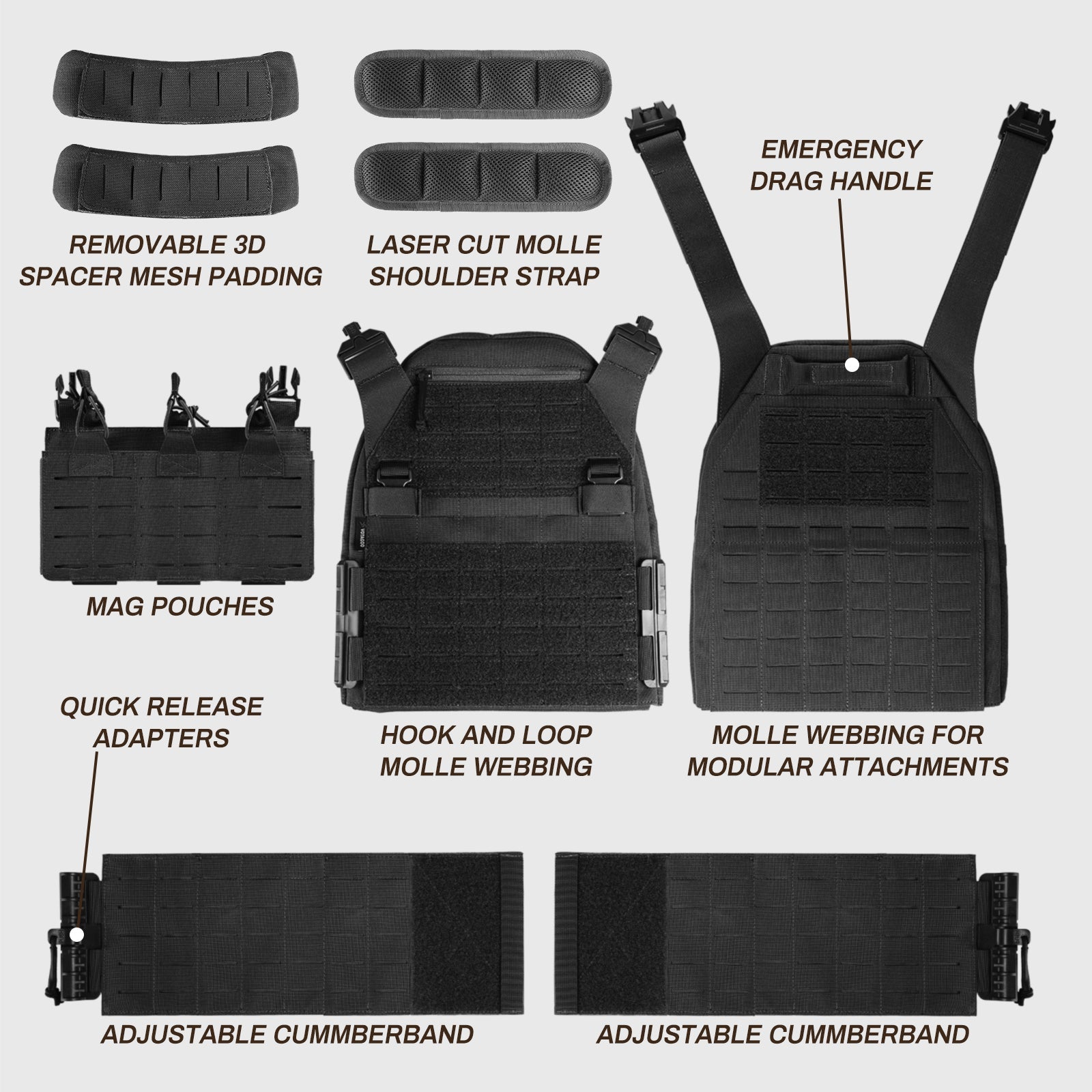 Adjustable & Comfortable: Tactical vest offers a highly adjustable modular system to fit various sizes. With hook-and-loop flap systems, it accommodates waist sizes from 43” to 52” (S to 3XL). The premium 3D breathable mesh liner provide ventilation and active comfort. Ergonomically enhanced shoulder straps and a heavy-duty reinforced drag handle ensure ease of use.