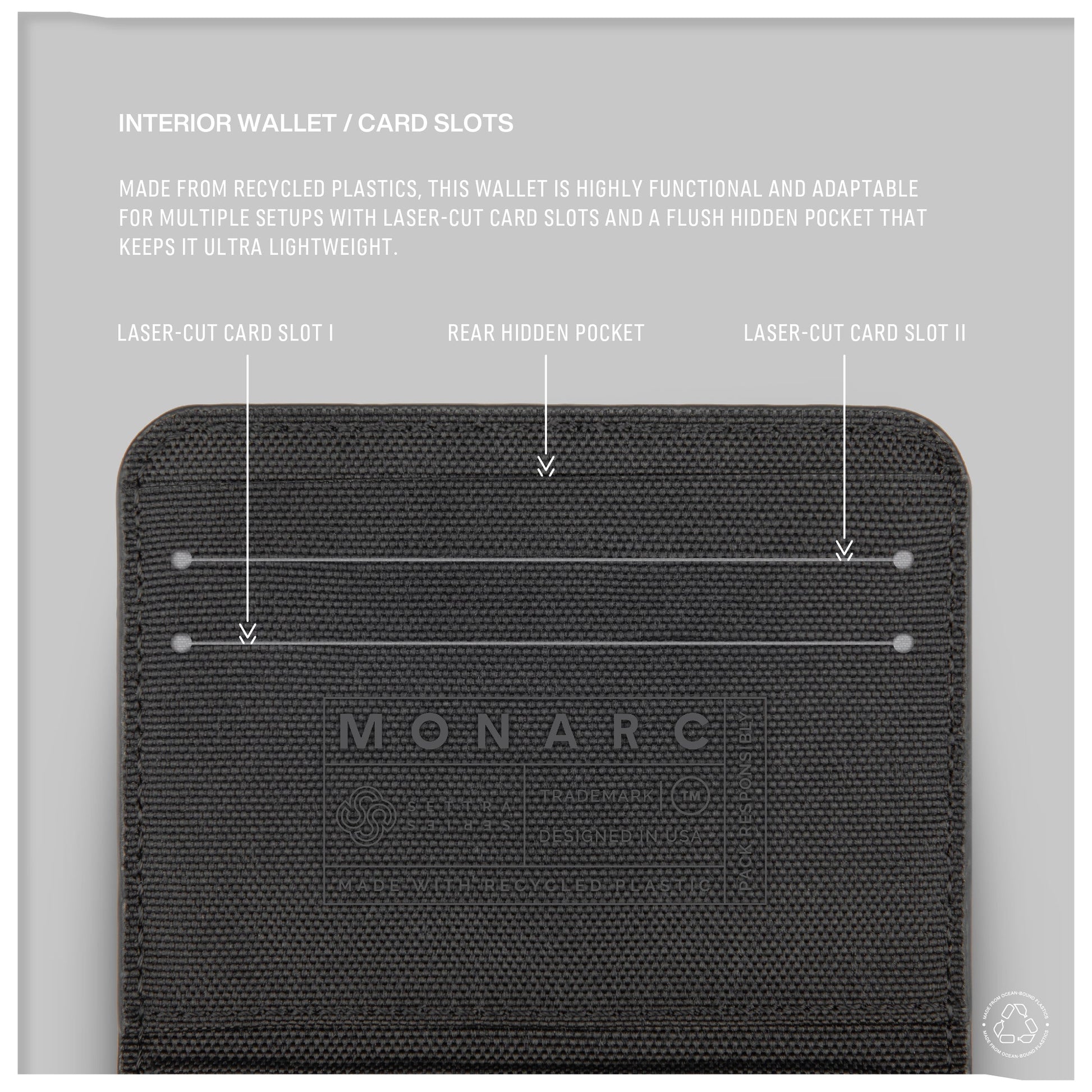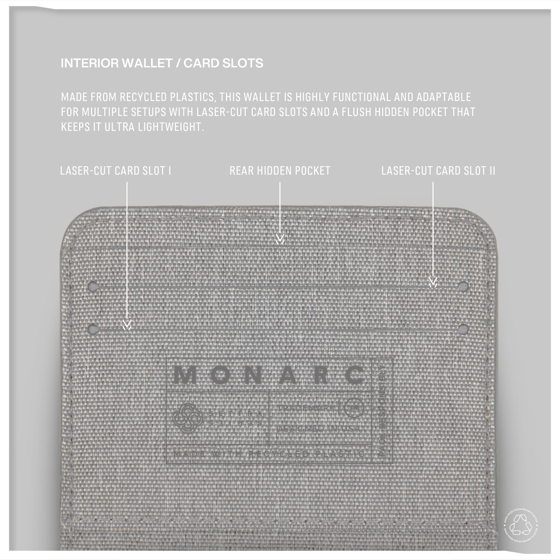 Introducing the Monarc Travel Wallet—an eco-friendly, versatile accessory crafted from recycled plastic bottles! This sleek wallet features a quick-access pull tab for your go-to card, keeping your essentials organized and secure. Perfect for travel, adventures, and everyday life.